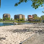 Med en sittegruppe, er 1-roms moderne og sentrale 2-soveroms leilighet - 7 minutter fra Ons møblert med en sofa og et skrivebord og fasiliteter som en multikanals-TV og trådløst internett for din glede. Senger utstyrt med fjærpuder er til gjestenes disposisjon. Med en egen toalett og dusj, kommer et bad med hårføner og håndklær.